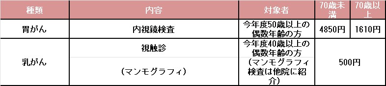 ※胃がん検診ではバリウム検査は行っておりません。胃内視鏡検査は予約が必要になりますので、事前に受付にてご予約下さい。